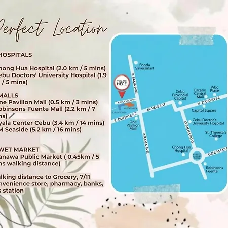 アパートはセブ市スポーツセンターから2.3km離れた所の場所にあります。 カーサ・ゴーオード・ミュージアムから車で10分くらいの距離にあります。